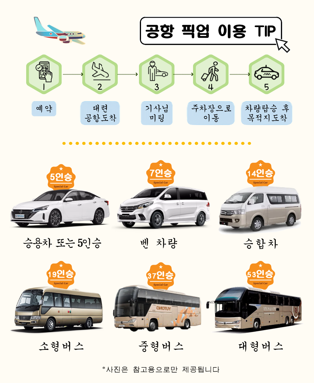 * 공항 픽업의 경우 예약 시 항공편명, 도착 공항 정보를 기재해 주세요.