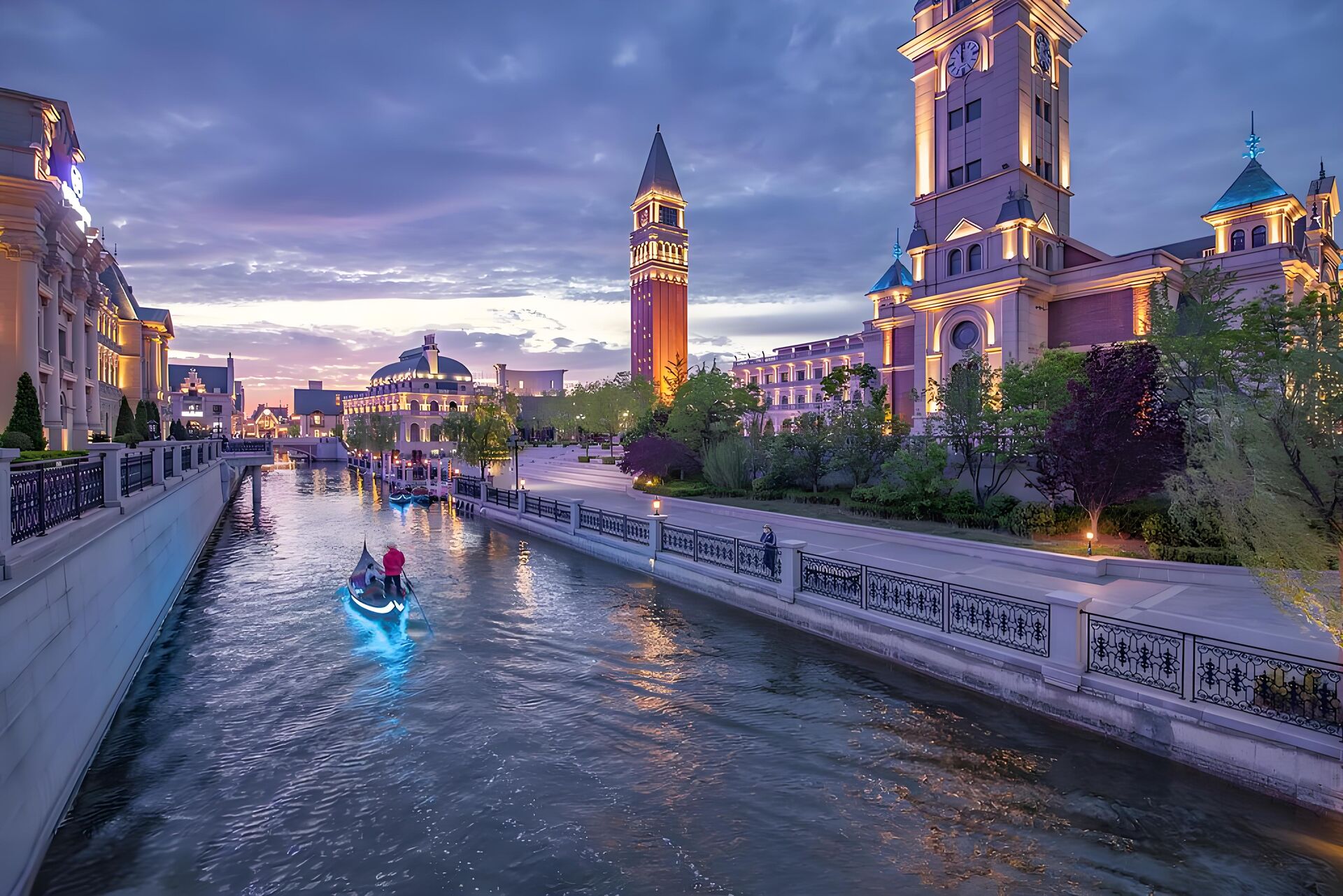 베네치아를 연상시키는 운하와 유럽풍 건축물이 있는 대련의 인기 관광지입니다.