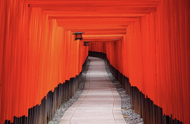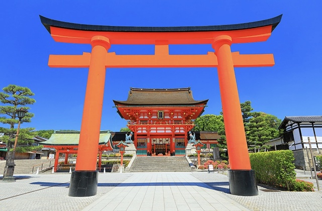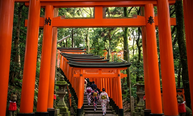 * 후시미 이나리 신사 (여우신사): 산 정상까지 끝없이 이어지는 수천 개의 붉은 도리이 터널이 신비로운 분위기를 자아내며, 곳곳에 세워진 영험한 여우 동상들이 인상적인 곳입니다.