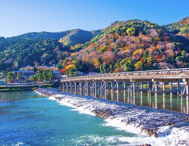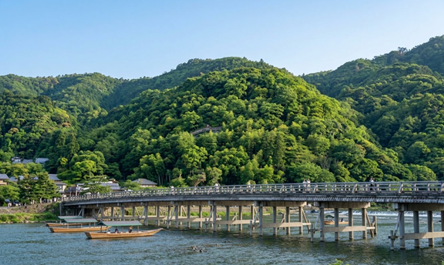 * 아라시야마: 헤이안 시대 귀족들의 별장지로 사랑받았던 곳으로, 강을 가로지르는 도게츠교의 운치와 끝없이 펼쳐진 대나무숲의 청량한 풍경이 일품입니다.