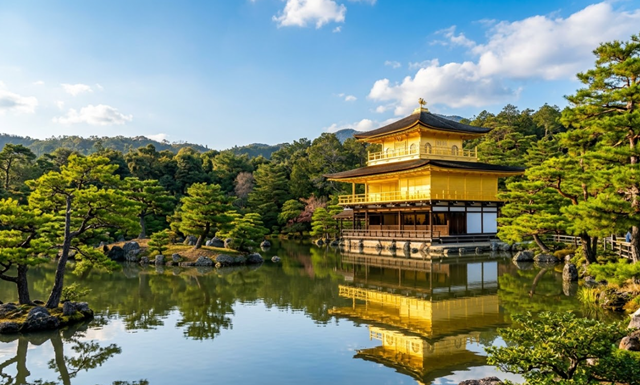 * 금각사: 사찰 전체가 순금 박으로 덮여 있어 눈이 부실 정도로 화려하며, 연못에 비치는 황금빛 건물의 반영은 교토를 상징하는 가장 대표적인 절경 중 하나입니다.