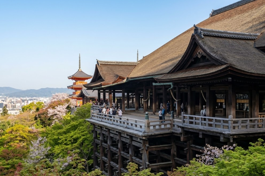 * 청수사: 거대한 나무 기둥 위에 세워진 본당 무대에서 교토 시내를 한눈에 담을 수 있으며, 내려오는 길의 전통 가옥 거리는 기념품과 간식거리가 가득해 걷는 재미가 있습니다.