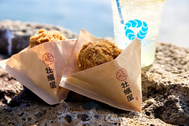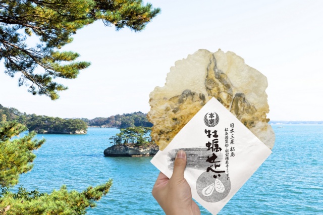 1톤의 압력으로 굴의 진한 풍미를 압축해 만든 바삭한 센베이와 미야기현 하면 빼놓을 수 없는 쫄깃한 우설 구이를 세트로 맛보세요. 길거리 음식을 즐기며 마쓰시마의 활기찬 분위기를 온몸으로 느낄 수 있습니다.