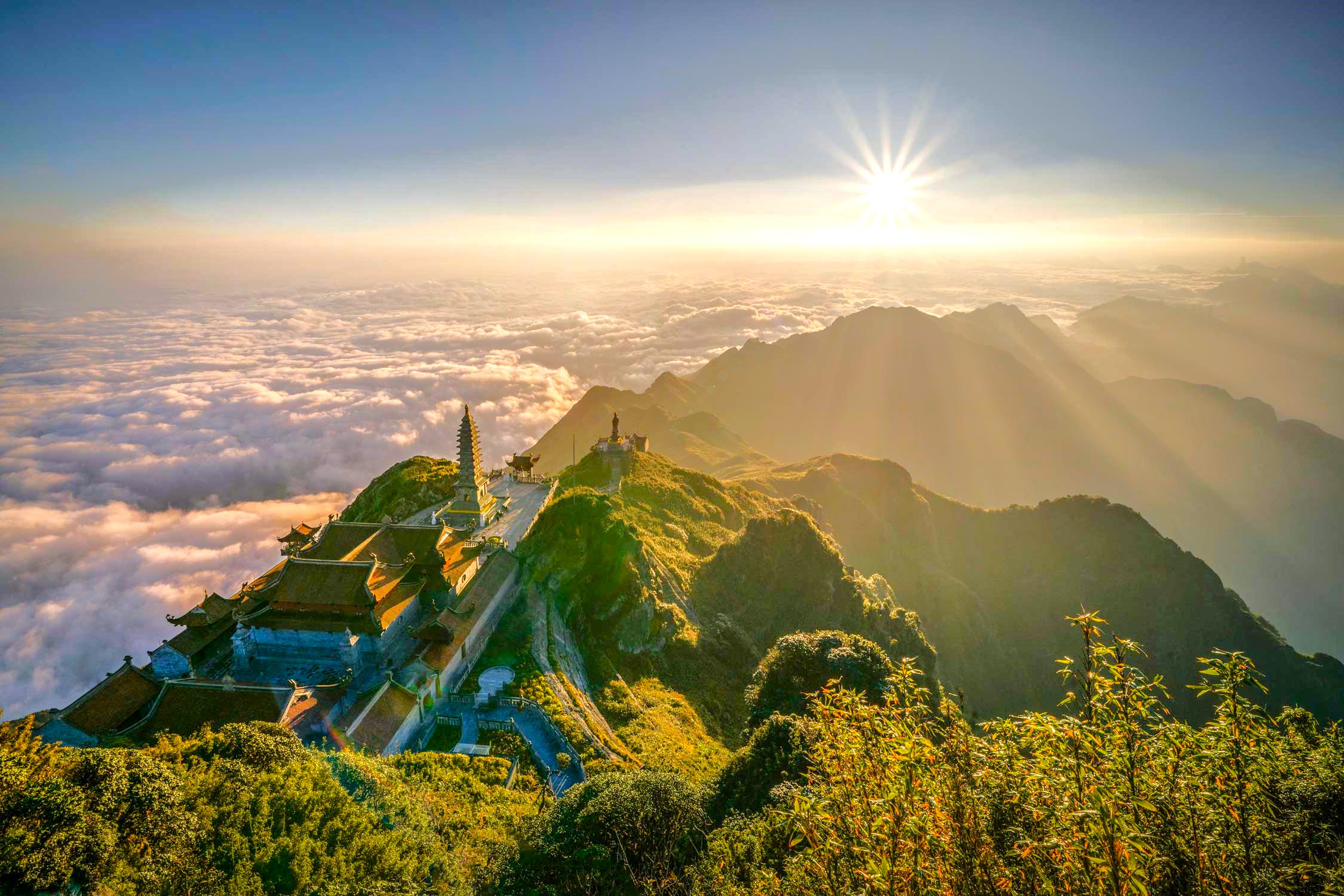 해발 3,143m, 베트남에서 가장 높은 곳에 올라 세상을 발아래 두는 짜릿함을 경험하세요. 케이블카를 타고 구름을 뚫고 올라가는 순간, 눈 앞에 펼쳐지는 웅장한 호앙리엔선 산맥과 운해는 경외심마저 불러일으킵니다. 정상에 우뚝 솟은 황금빛 부처상 앞에서 사파의 맑은 정기를 마시며, 일상에서 무거웠던 마음을 비워내기에 더없이 완벽한 장소입니다.