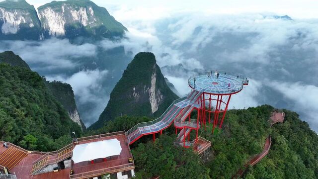 326m의 수직 절벽을 단숨에 오르는 백룡 엘리베이터는 장가계 투어의 하이라이트입니다. 투명창 너머로 순식간에 펼쳐지는 수천 개의 석봉을 바라보며, 기술과 자연이 만들어낸 경이로운 조화를 체감해 보세요.