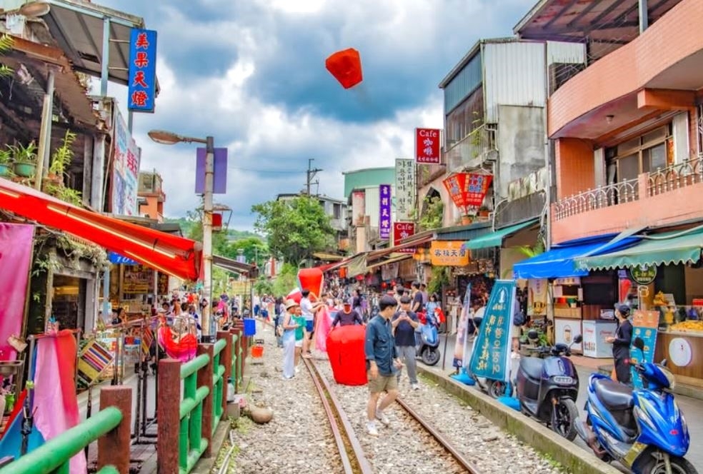 오래된 기찻길을 사이에 두고 좁게 늘어선 상점들이 정겨운 분위기를 자아냅니다. 기차가 지나가지 않는 시간, 철길 위에서 소원을 정성껏 적은 천등을 하늘 높이 날려 보내며 특별한 추억을 기록할 수 있습니다.