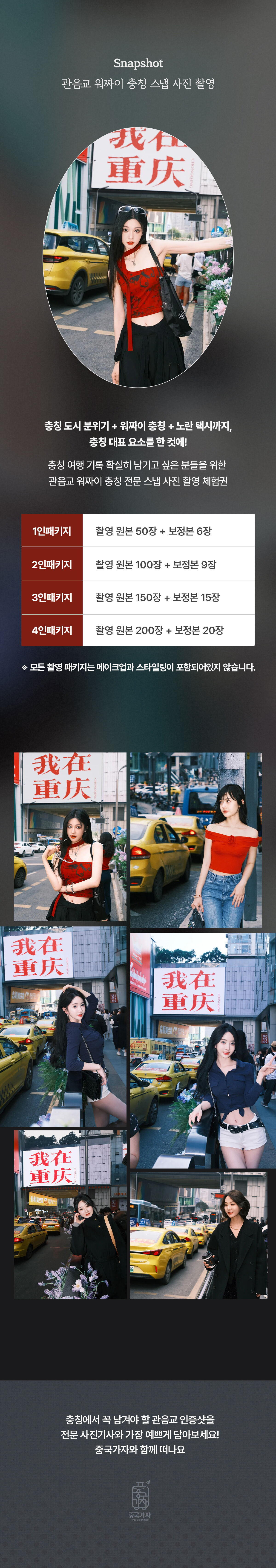 단순한 사진 촬영이 아니라, 충칭 여행의 ‘대표 장면’을 제대로 남기는 경험을 해보세요.