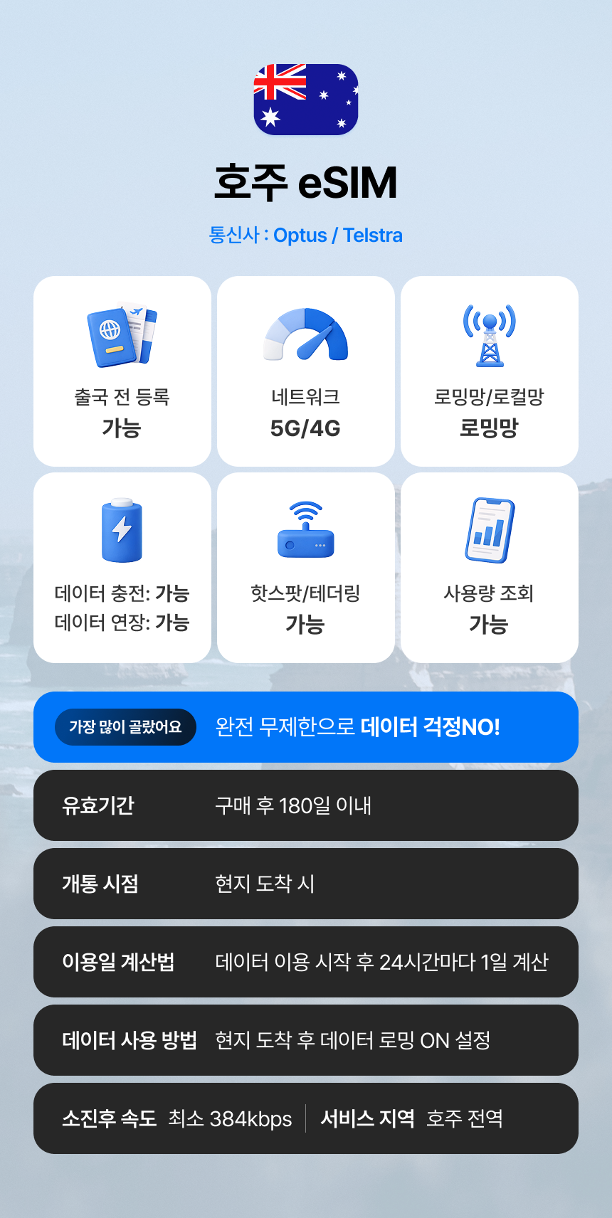 더욱더 가볍고 안전하게 완전 무제한 데이터와 간편한 여행을 떠나보세요!