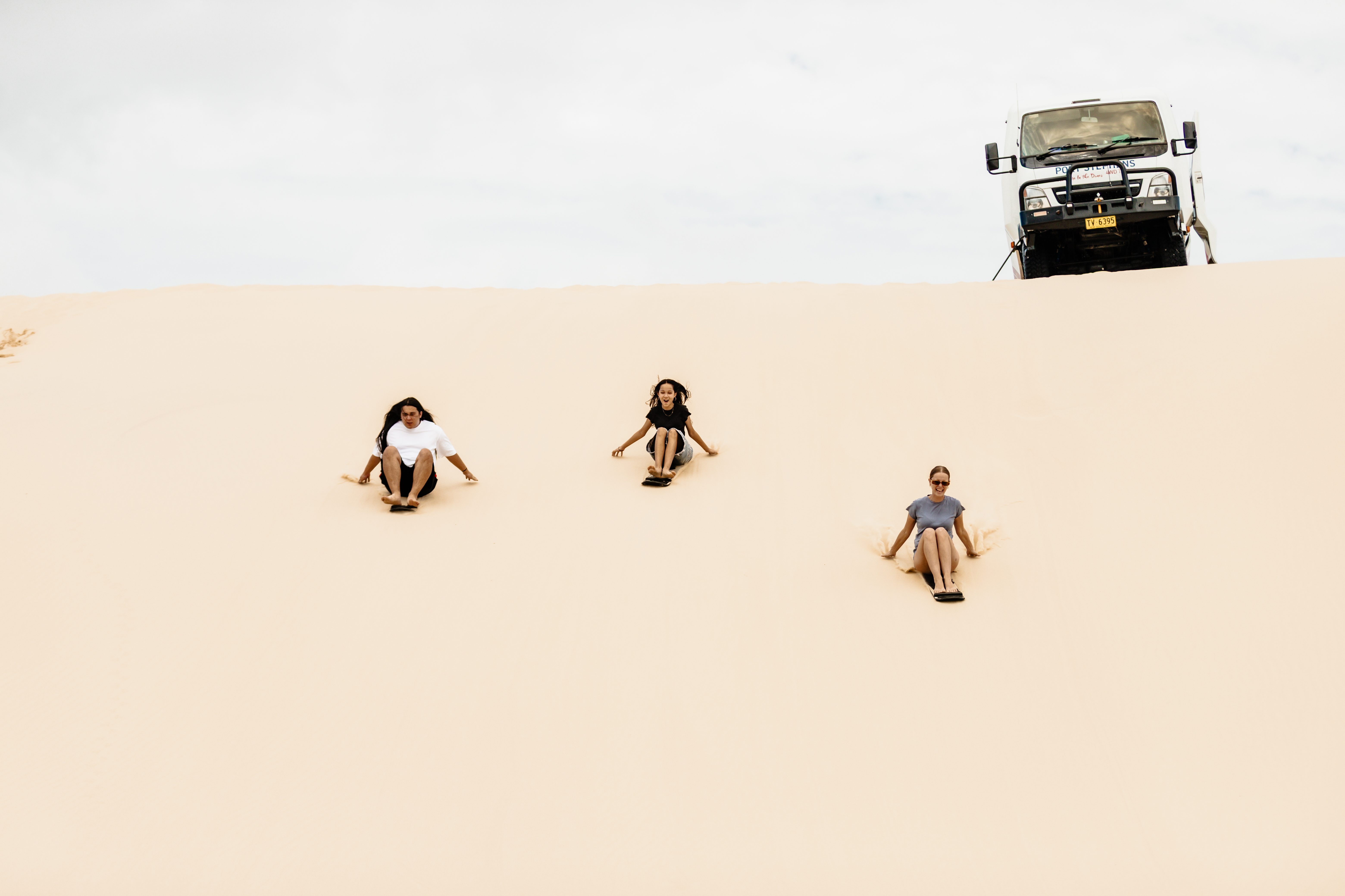 포트스테판의 하이라이트로, 경사진 모래 언덕 위를 보드를 타고 미끄러져 내려가는 짜릿한 체험입니다. 고운 모래와 시원한 바닷바람이 어우러져 스트레스를 한 번에 날려버릴 수 있습니다.