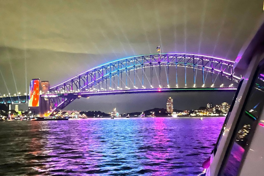 영어 제공시드니의 밤이 찬란한 빛의 예술로 물드는 시간, 2026 비비드 시드니 페스티벌을 가장 완벽하게 즐기는 방법은 물 위에서 도시를 바라보는 것입니다. 거대한 인파를 벗어나 오직 소수의 인원만이 탑승하는 럭셔리 요트 위에서 파노라마처럼 펼쳐지는 라이트 쇼를 감상해 보세요. 오페라 하우스와 하버 브릿지가 뿜어내는 오색찬란한 빛줄기가 바다에 투영되는 장관은 오직 이 시즌에만 만날 수 있는 특별한 선물입니다. 모던한 시티 라인과 화려한 조명이 어우러진 하버의 낭만을 여유로운 크루즈 항해와 함께 누릴 수 있습니다.