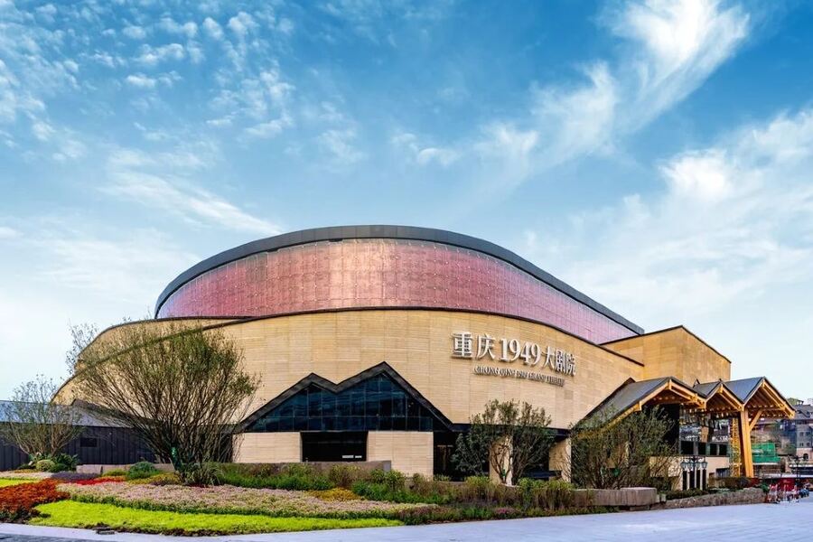 충칭의 랜드마크인 자기구(츠치커우) 인근에 위치한 '1949 대극장'은 공연장 그 자체가 하나의 거대한 예술 작품입니다. '충칭 1949' 공연은 1949년 중경 해방 직전의 긴박했던 역사적 순간을 배경으로 하며, 충칭의 지형적 특징인 '입체 도시'의 감각을 무대 위로 그대로 옮겨왔습니다.