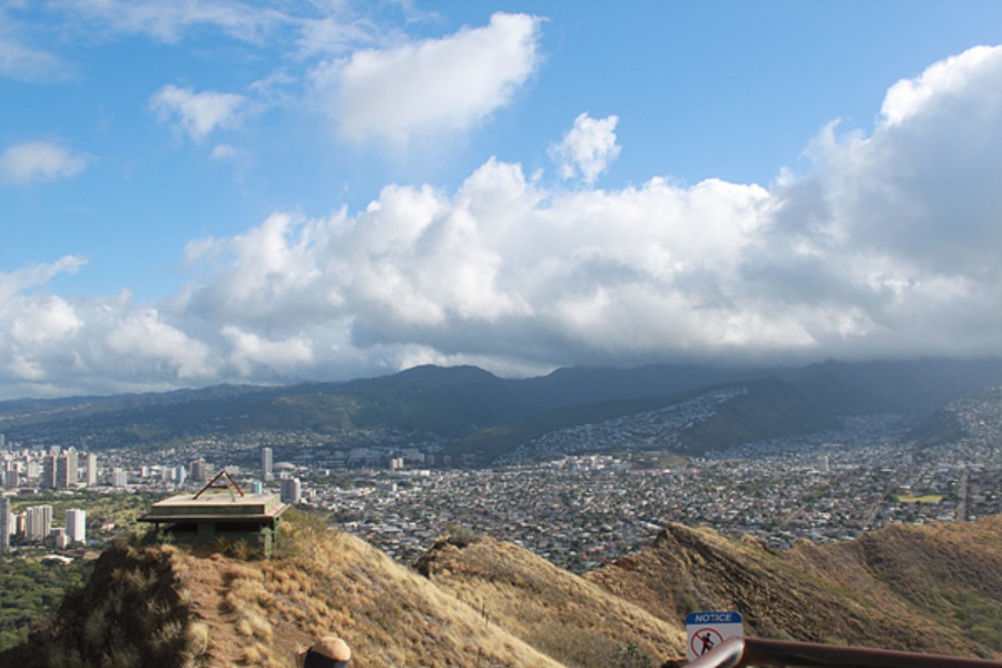정상에 서면 끝없이 펼쳐진 동부 해안도로와 현대적인 와이키키의 빌딩 숲이 어우러진 이색적인 풍경을 감상할 수 있습니다. 탁 트인 시야 속에서 하와이의 햇살을 만끽하며 잊지 못할 사진을 남겨보세요.
