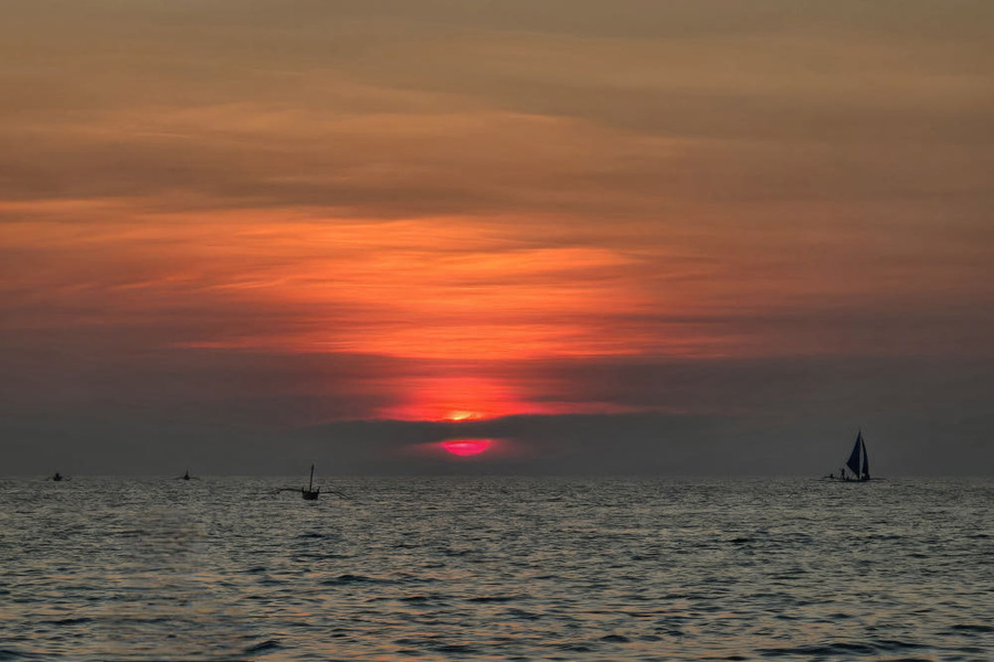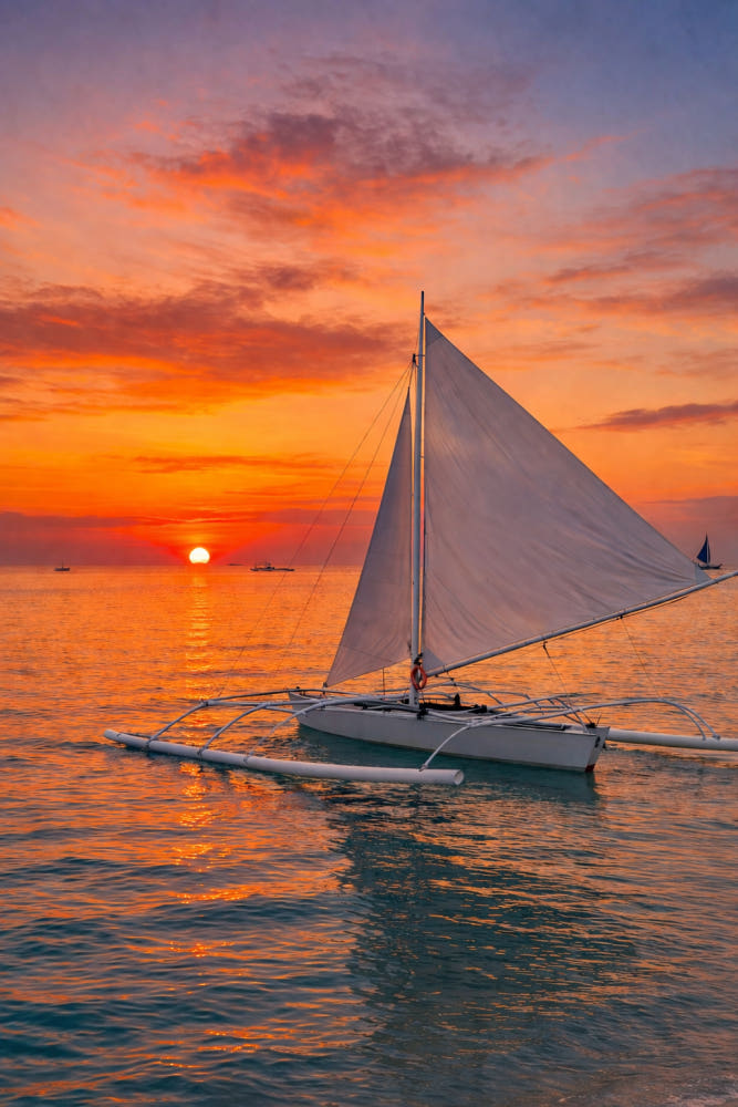 "바람의 숨결에 몸을 맡기고 보홀의 바다를 유영해 보세요. 붉게 물든 하늘 아래 돛단배가 그리는 곡선은 당신의 여행을 가장 아름다운 영화로 만들어줄 것입니다."