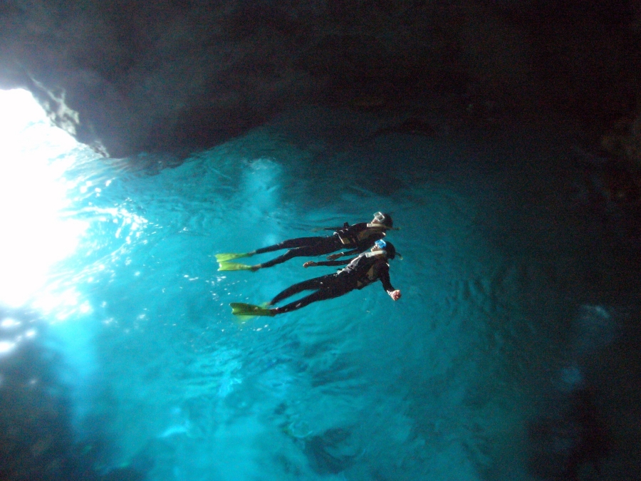 전문 인스트럭터의 안내에 따라 물속 깊은 곳의 고요함을 경험할 수 있습니다. 투명한 시야 덕분에 마치 우주를 유영하는 듯한 기분을 느낄 수 있으며, 운이 좋으면 동굴 안쪽의 더 깊고 진한 푸른색을 카메라에 담을 수 있습니다.
