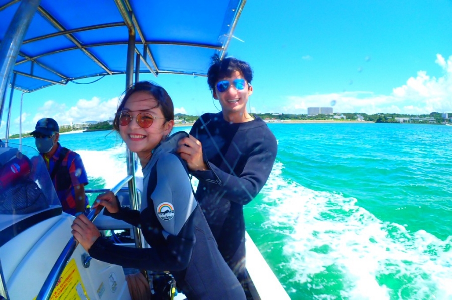 "걷지 않고 보트로 떠나는 스마트한 여정, 오키나와 바다의 절정을 가장 편안하게 감상하세요."