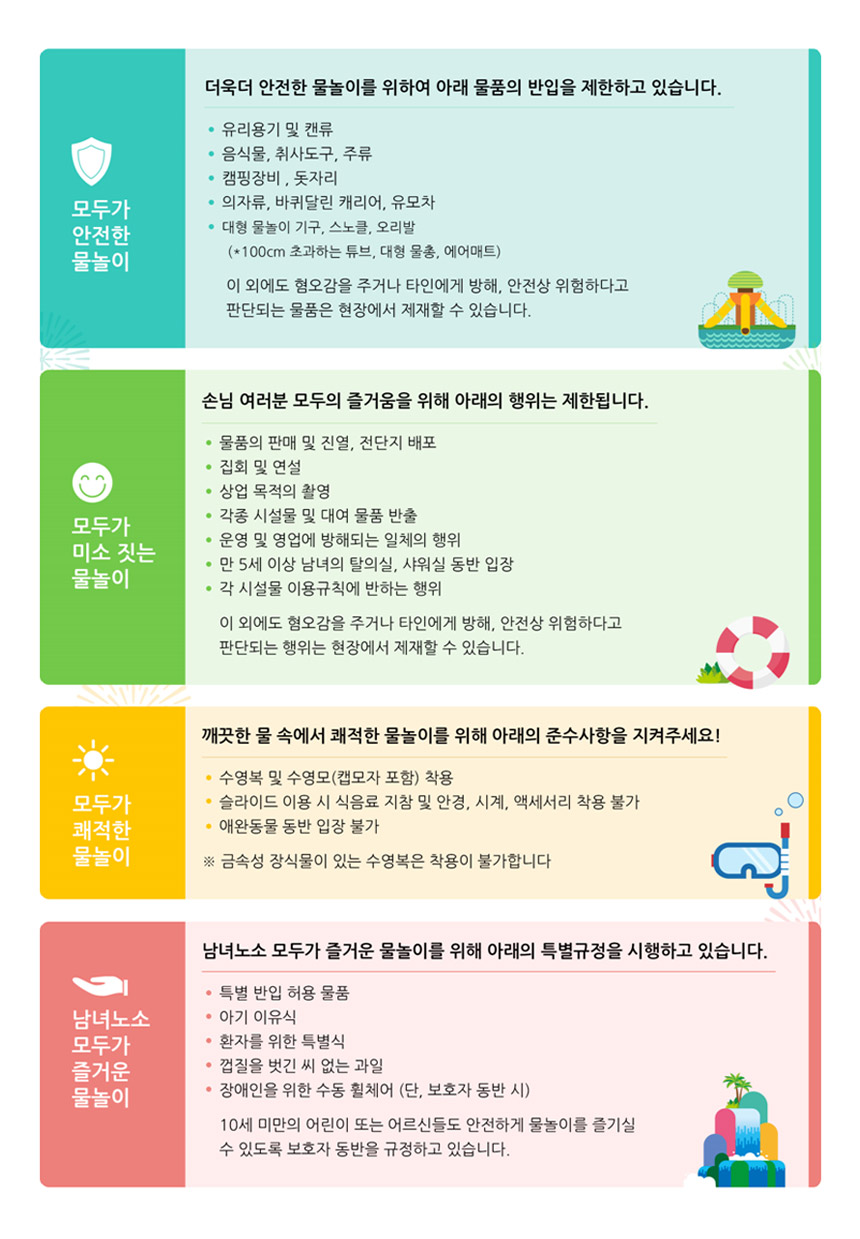 신화워터파크에서는 스릴 넘치는 빅컵, 버블팝, 레이지 리버, 그리고 아이들과 함께 즐기기 좋은 미니풀, 키즈풀까지 마련되어 있어요. 워터파크 안팎으로도 다양한 레스토랑과 스낵이 있어 하루 종일 맛있고 즐겁게 머물 수 있답니다.💦