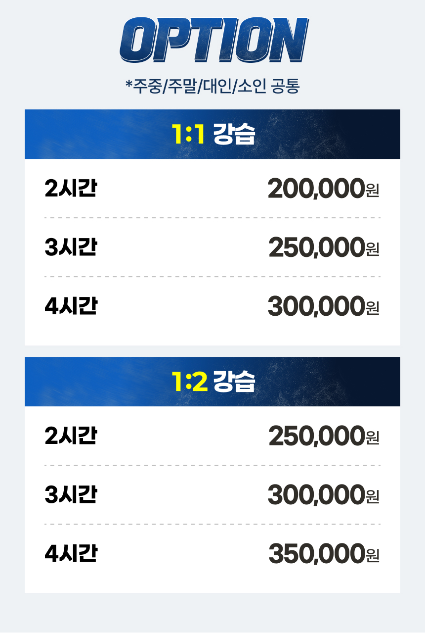 ※ 매주 월요일, 목요일 야간 강습 불가