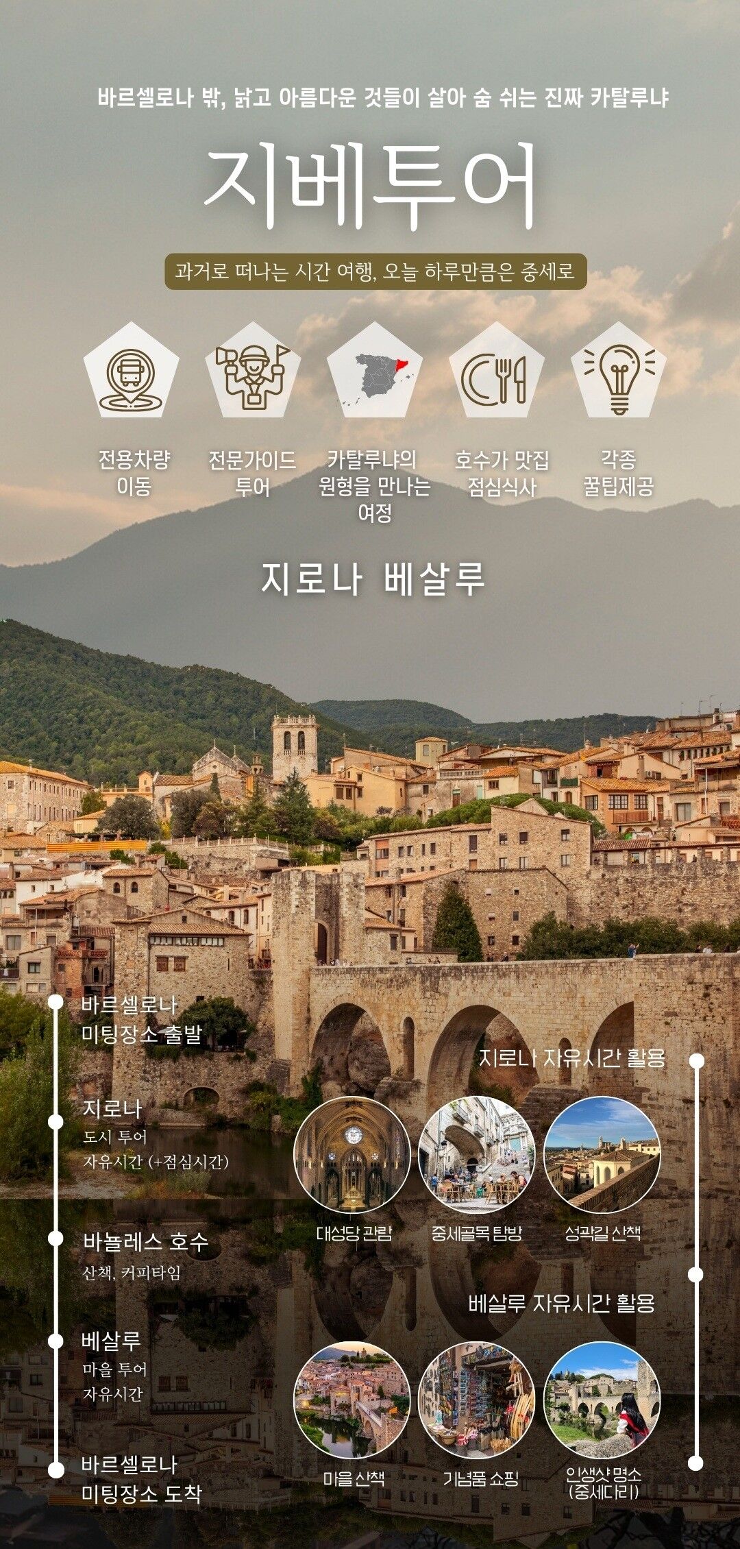 엔터가이드가 재미있는 스토리텔링으로 여행의 즐거움을 더해준답니다. 바르셀로나에서 출발해 약 10시간 동안 전용 차량으로 편안하게 이동하며 중세 유럽의 정취를 만끽하는 투어예요. 최소 6명부터 최대 25명까지의 소규모 그룹으로 진행되어 보다 쾌적하고 집중도 높은 여행을 즐길 수 있어요. 신뢰할 수 있는 현지 법인 여행사 '투어펠리스'가 안전하고 즐거운 하루를 약속해요.
