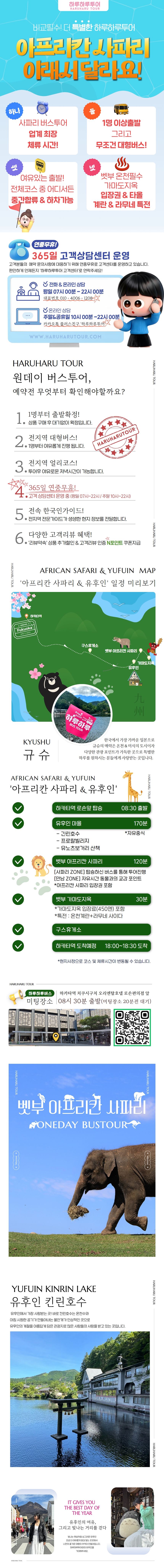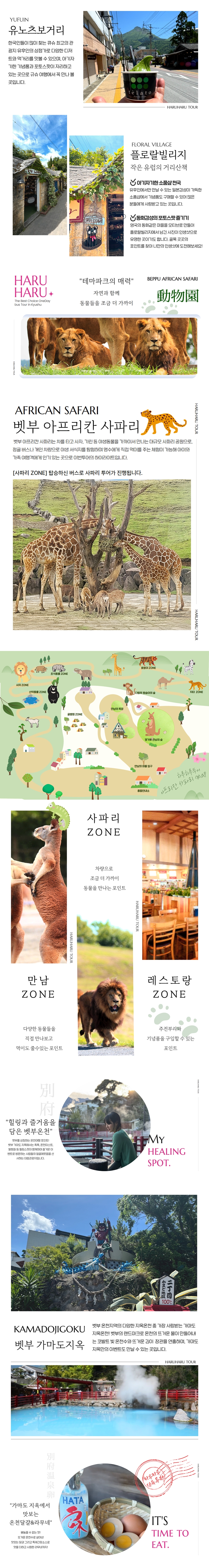 사진 찍기 좋은 스팟도 가득해서, 감성 가득한 유후인과 짜릿한 아프리칸 사파리를 하루에 알차게 즐기며 멋진 추억을 잔뜩 쌓아보세요!