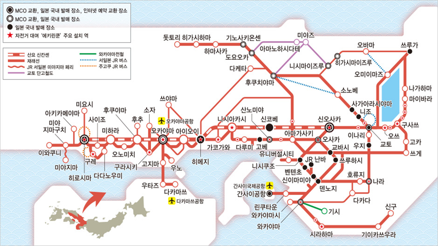 간사이 와이드 패스의 가장 큰 장점은 바로 산요 신칸센(신오사카-오카야마 구간)을 비롯해 하루카(Haruka) 특급열차 등 JR 서일본의 주요 노선을 자유석으로 무제한 이용할 수 있다는 점을 자랑합니다.