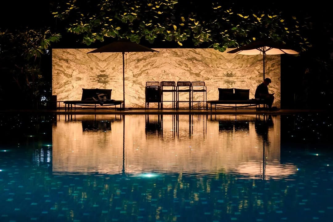 파크로열 컬렉션 마리나 베이는 단순한 호텔이 아닌 거대한 '호텔 인 어 가든(Hotel-in-a-Garden)'이라는 컨셉을 구현합니다. 호텔 내부에는 21층 높이의 아트리움과 함께 2,400개 이상의 관목과 나무가 심어져 있어, 마치 건물 전체가 울창한 정원 속에 들어와 있는 듯한 환상적인 분위기를 자랑합니다. 이 혁신적인 디자인은 건축적 아름다움뿐만 아니라 자연 통풍을 극대화하고 냉방 에너지를 절약하는 친환경적인 기능도 수행합니다. 특히 밤이 되면 정원에 조명이 켜지며 펼쳐지는 낭만적인 야경은 이곳만의 독보적인 자랑입니다.