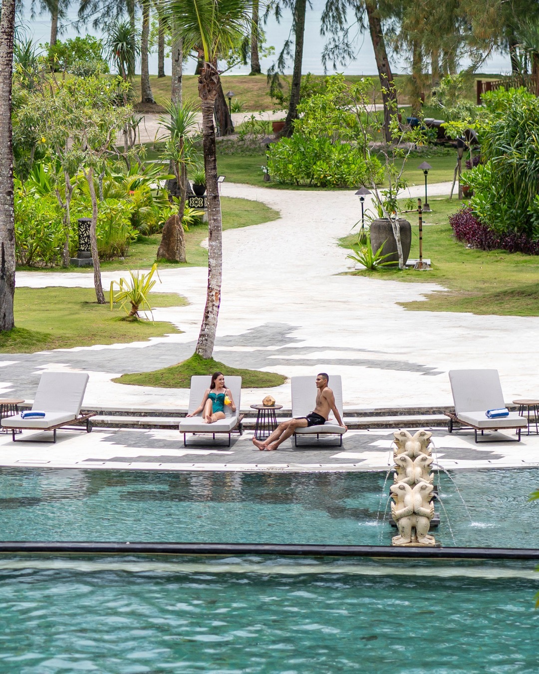 리조트 중앙에 넓게 펼쳐진 대형 야외 수영장은 휴식과 물놀이를 위한 중심 공간입니다. 선베드와 파라솔이 충분히 마련되어 있습니다.