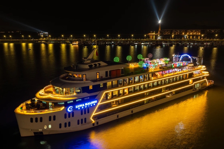 식사를 마친 후에는 크루즈 데크에서 펼쳐지는 화려한 라이브 쇼를 즐길 차례입니다. 감미로운 밴드 연주와 화려한 댄스 퍼포먼스, 그리고 하롱베이 밤하늘을 수놓는 불꽃놀이까지 다채로운 프로그램이 마련되어 있습니다. 특히 루나 하롱 크루즈가 바이짜이 대교와 하롱 시내의 화려한 불빛 사이를 유영할 때 감상하는 야경은 인생 사진을 남기기에 더없이 완벽한 순간을 선사합니다.