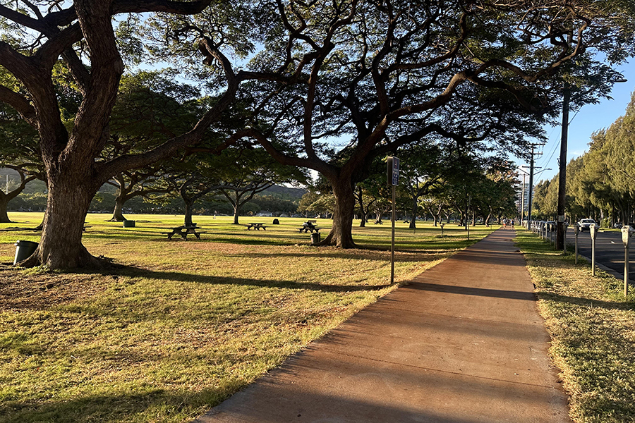 와이키키의 북쪽 경계를 따라 흐르는 운하를 따라 달리는 코스입니다. 한쪽에는 평화로운 물결이, 반대쪽에는 와이키키의 화려한 호텔들이 늘어서 있어 이색적인 풍경을 제공합니다.