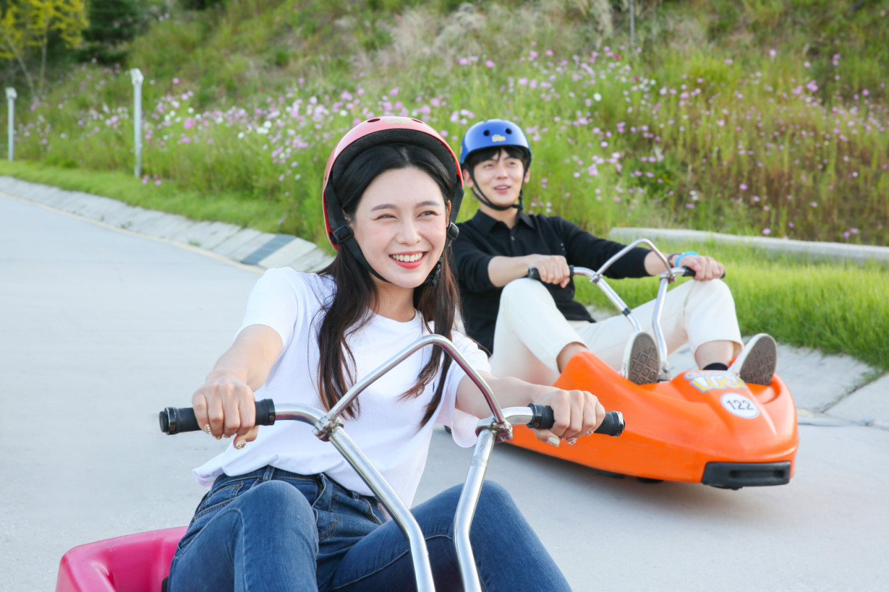 산과 계곡의 지형을 그대로 살린 코스로, 속도감을 즐기는 분들께 추천합니다. 특히 360º 회전 구간과 곳곳에 배치된 터널, 낙차 구간은 한 번 타보고 나면 "한 번 더!"를 외치게 만드는 중독성을 자랑하죠.