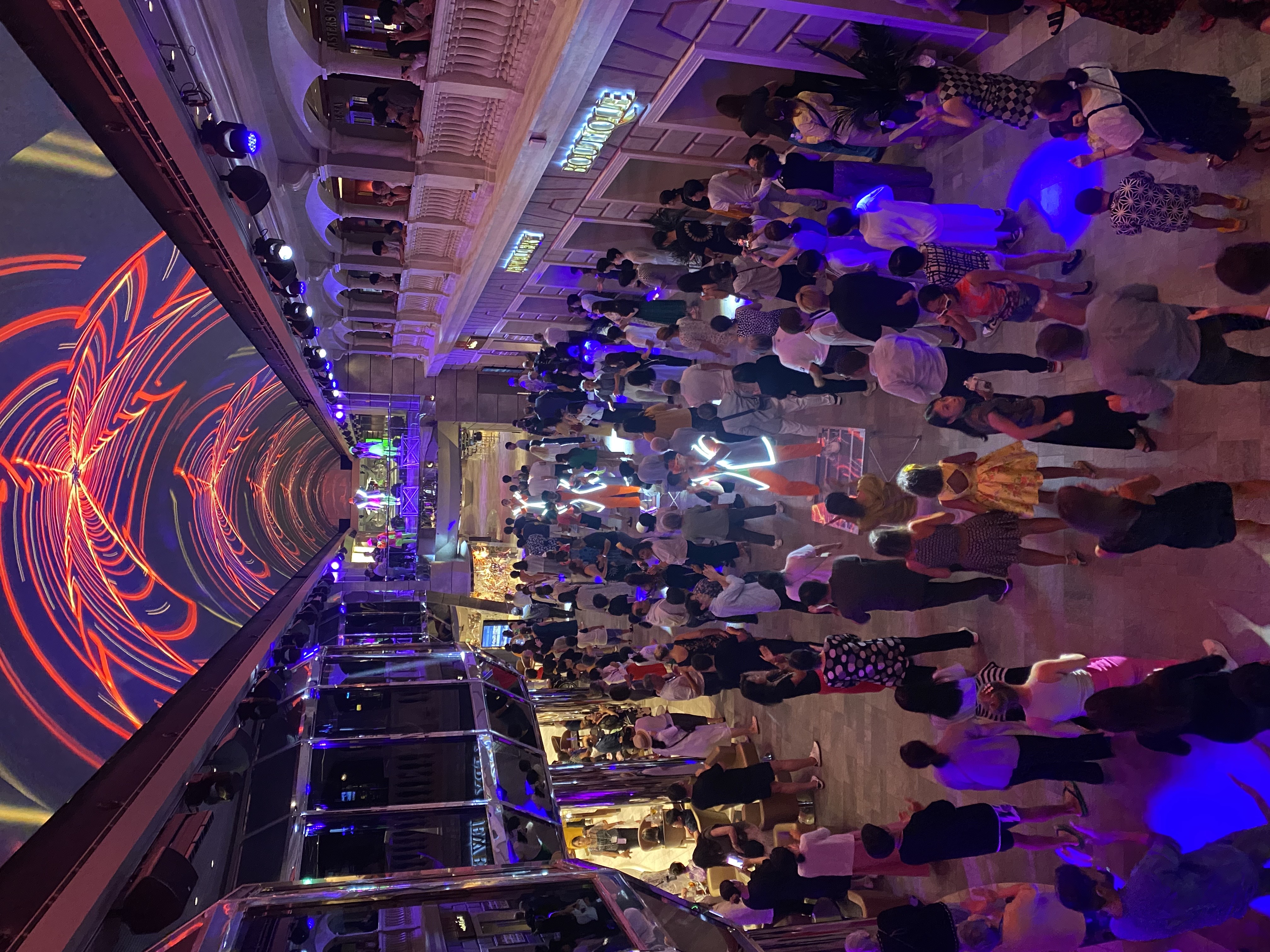 천장의 거대한 LED 스카이 스크린이 시시각각 변하며 화려한 조명 쇼를 선보이는 96m 길이의 쇼핑 로드입니다.