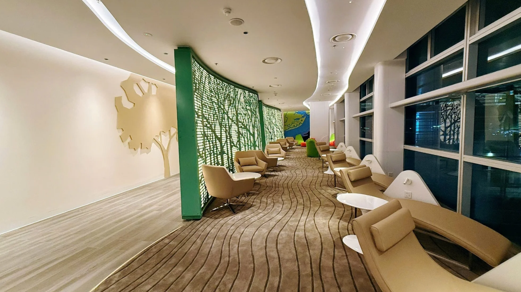 이미그레이션을 통과한 후 마주하게 되는 반다 라운지는 입구부터 남다른 분위기를 자아냅니다. 이곳의 가장 큰 매력은 통창 너머로 시원하게 펼쳐진 활주로 풍경입니다.