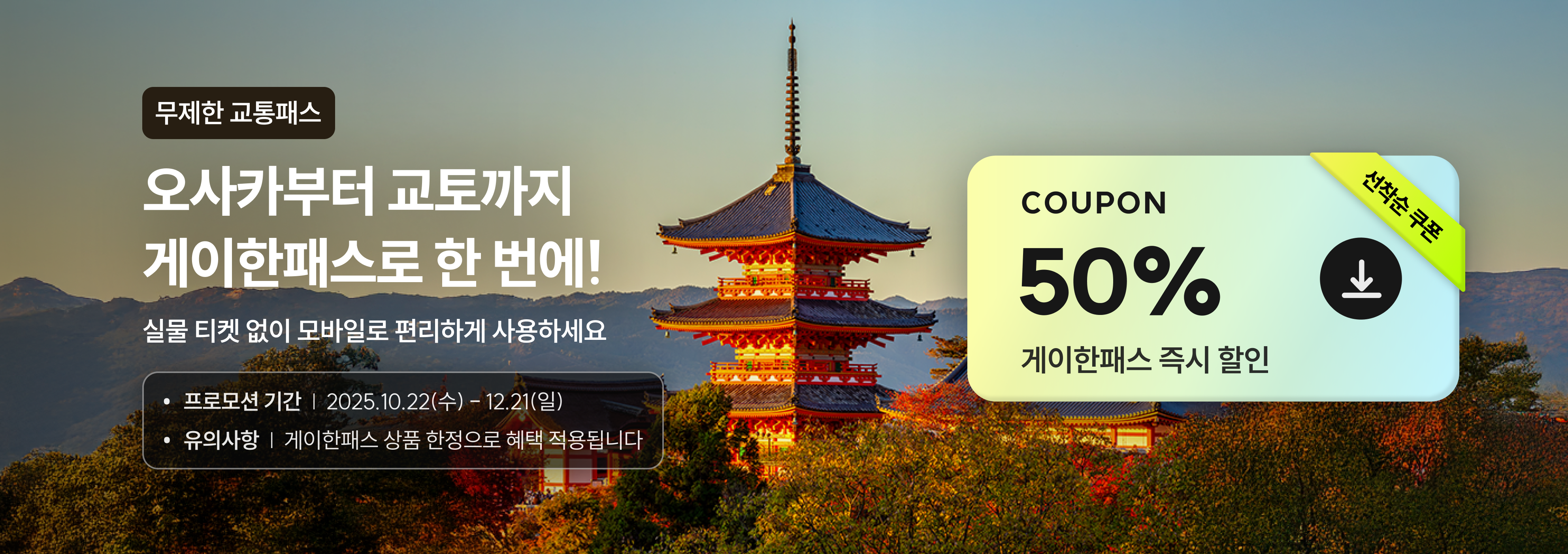 [50%할인] 오사카 & 교토 게이한 디지털 패스 24시간권